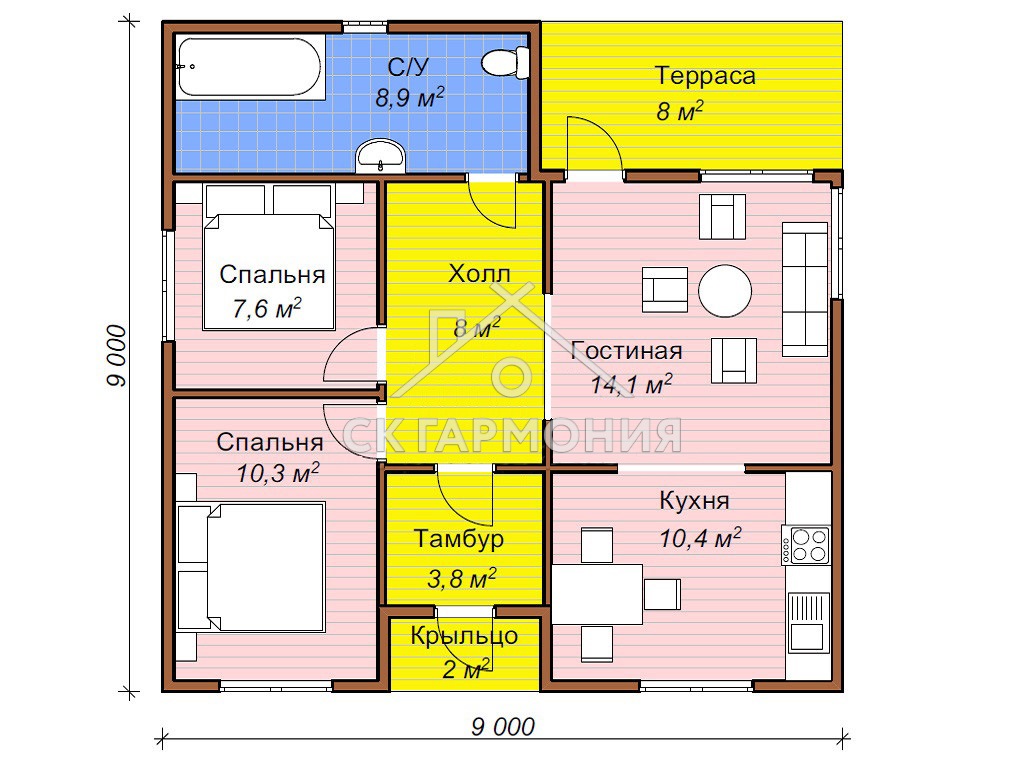 Проект дома «Великий Устюг» представляет собой элегантный одноэтажный дом с террасой, из экологически чистых материалов, который подходит для постоянного проживания. Строительство одноэтажного дома под ключ в Пскове и Псковской области потребует сроки до 22 дней. Вы можете заказать строительство без отделки или с чистовой отделкой и коммуникациями.